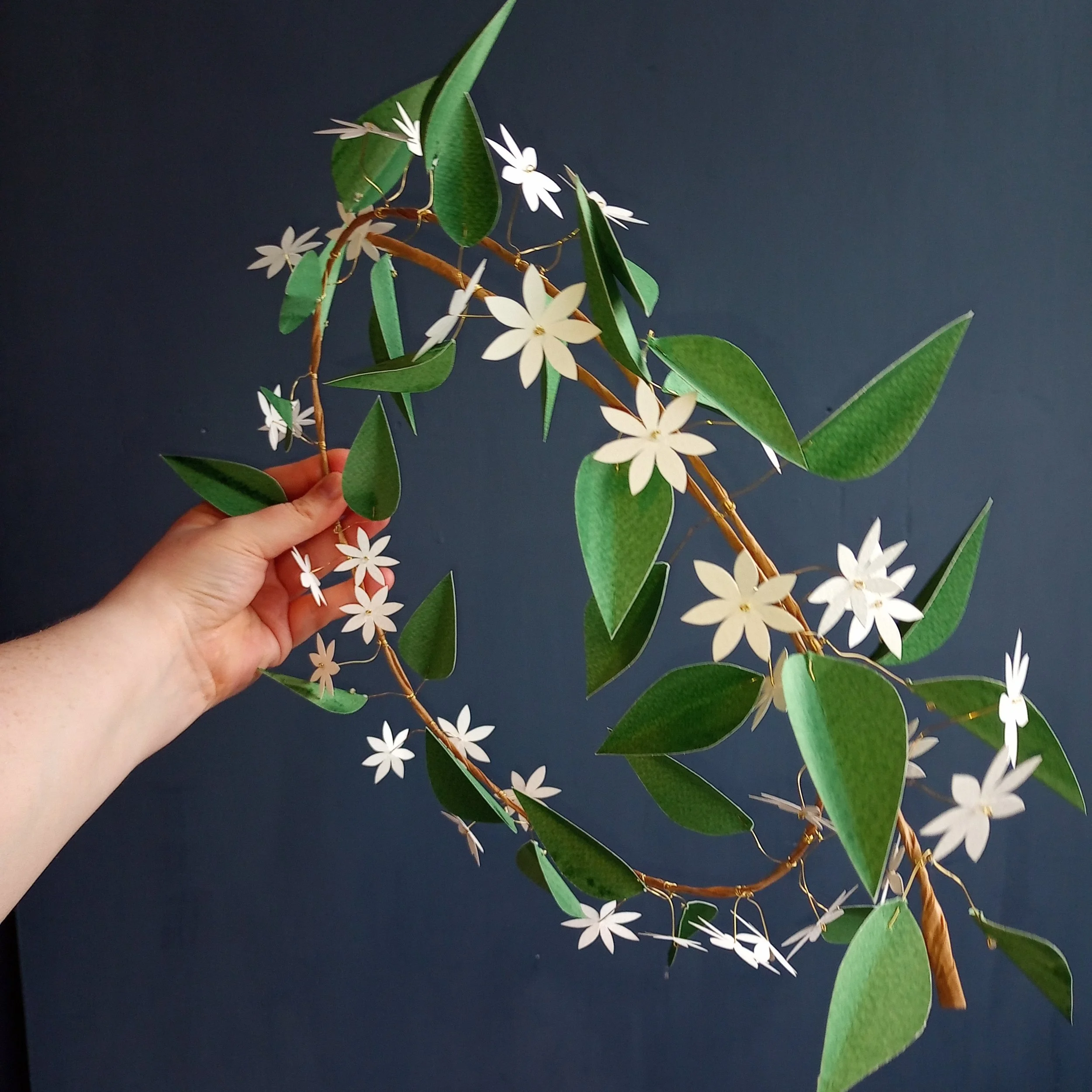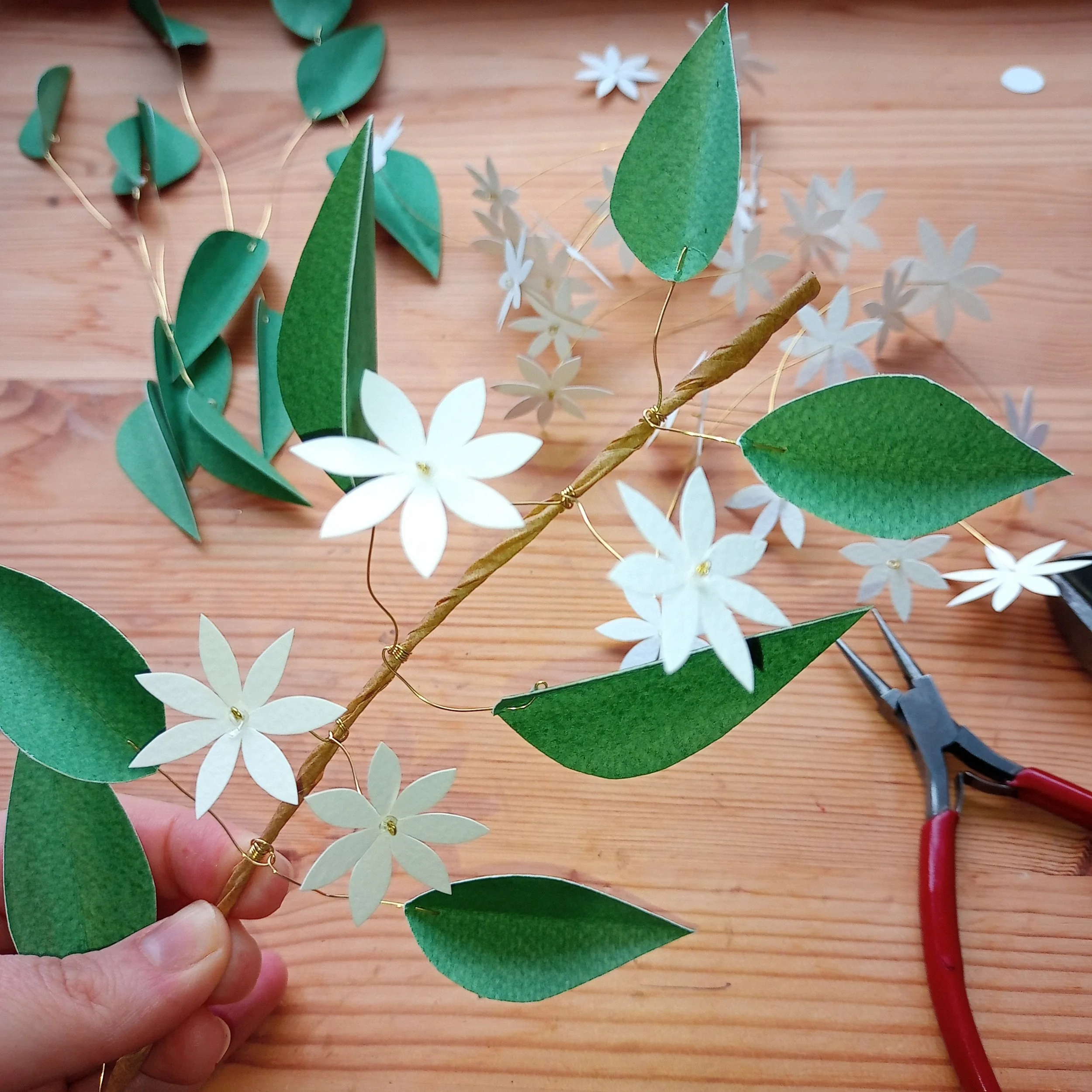 Jasmine is one of Anya’s favourite plants and smells, and she wanted to incorporate its likeness into her nursery wall hanging, so I set about making some flowers to match these special blooms.