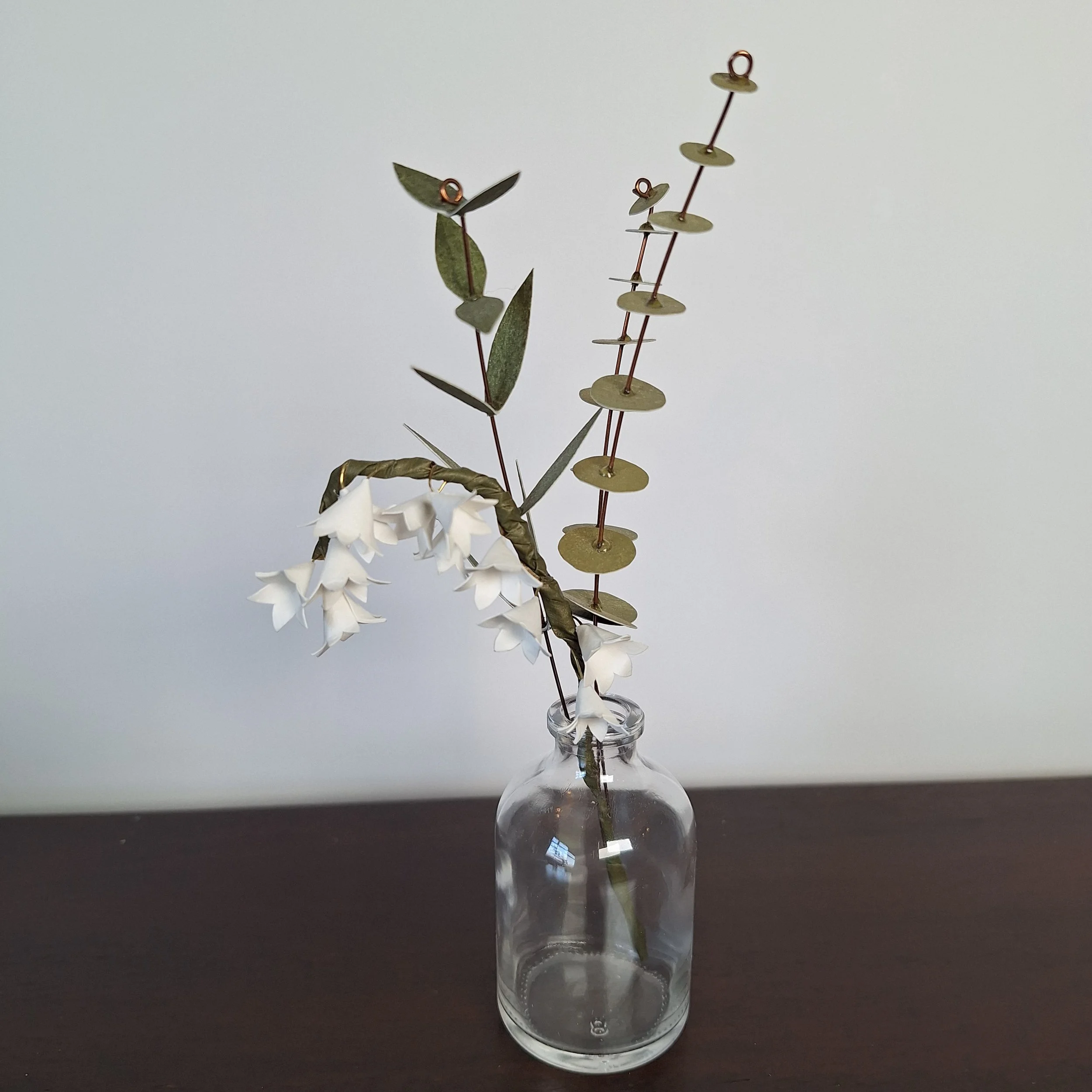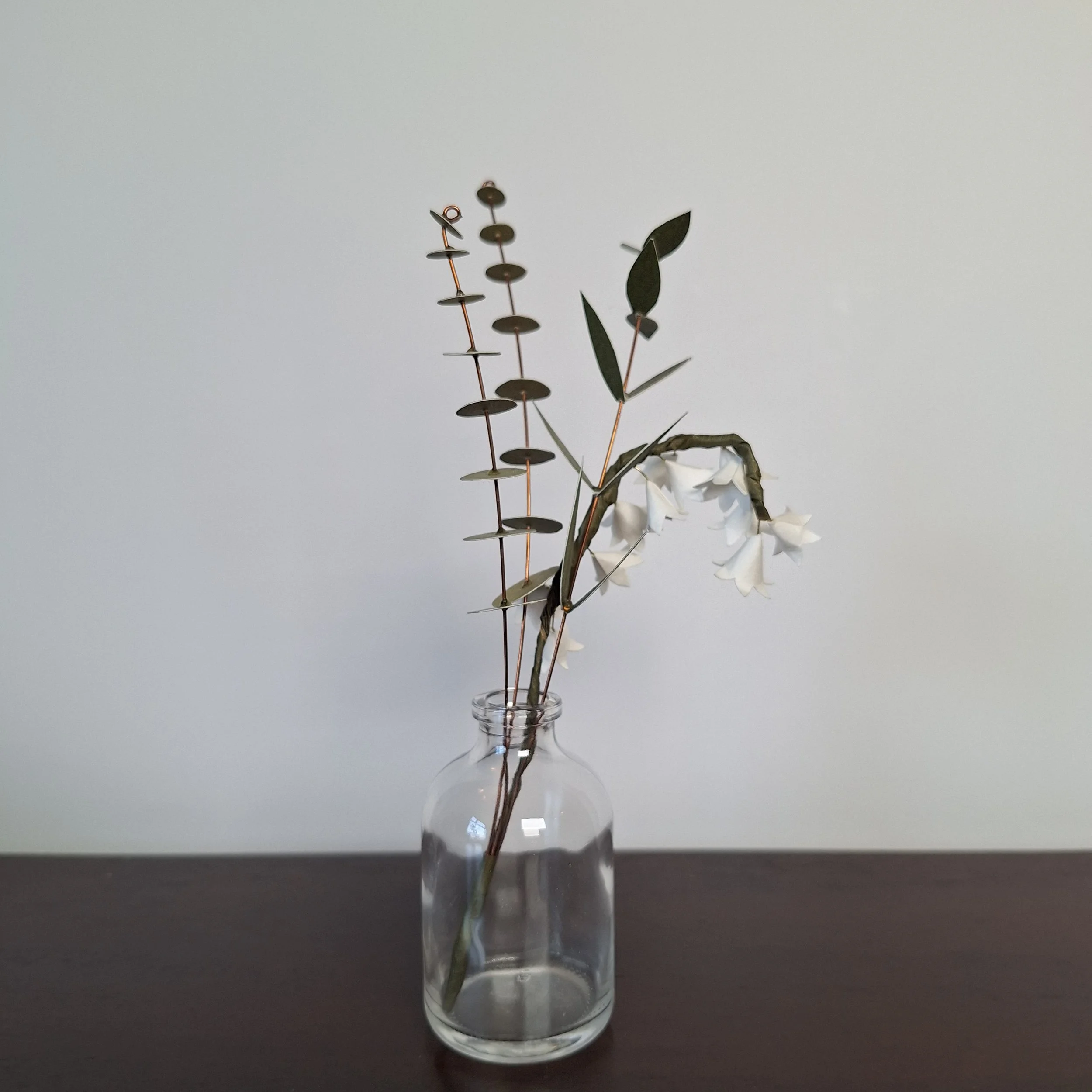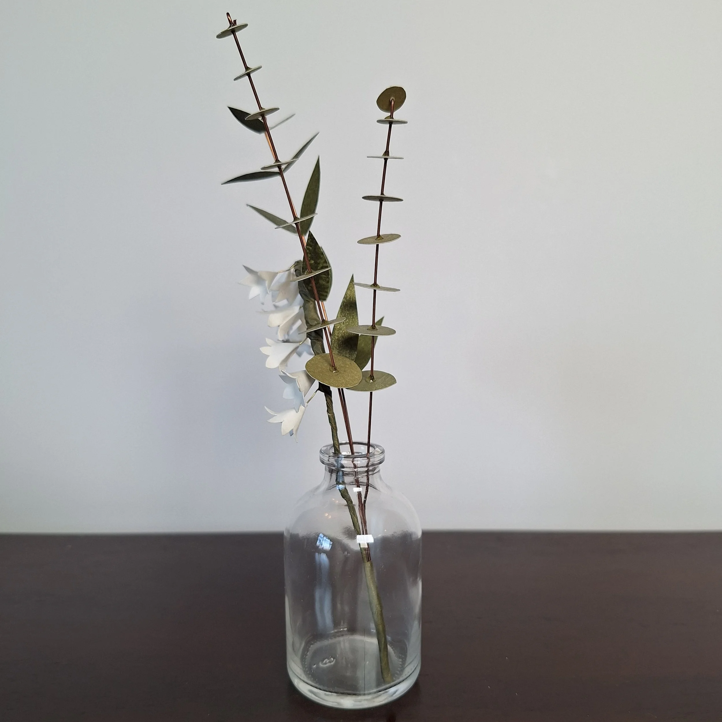 Two clover stems in a deep pink red are accompanied by three leafy stems.