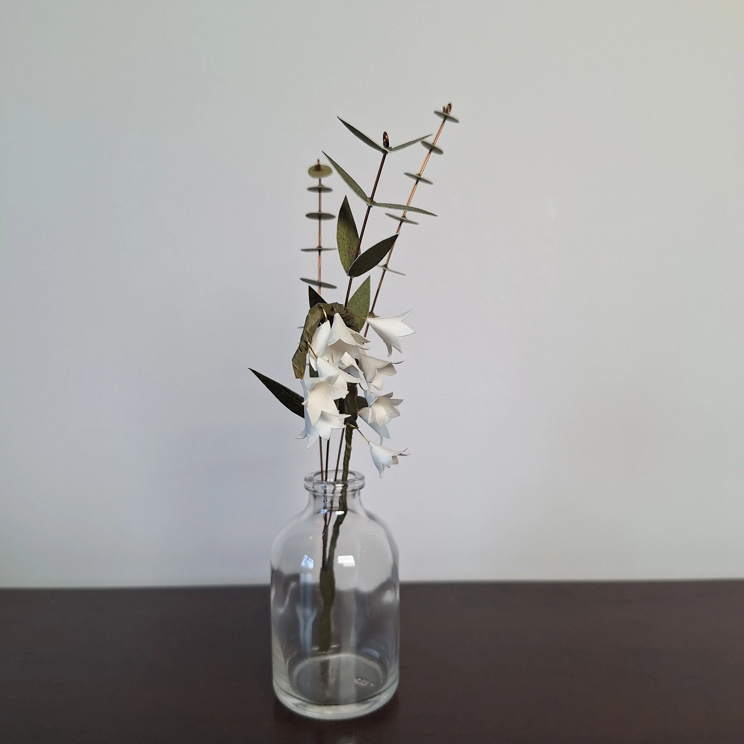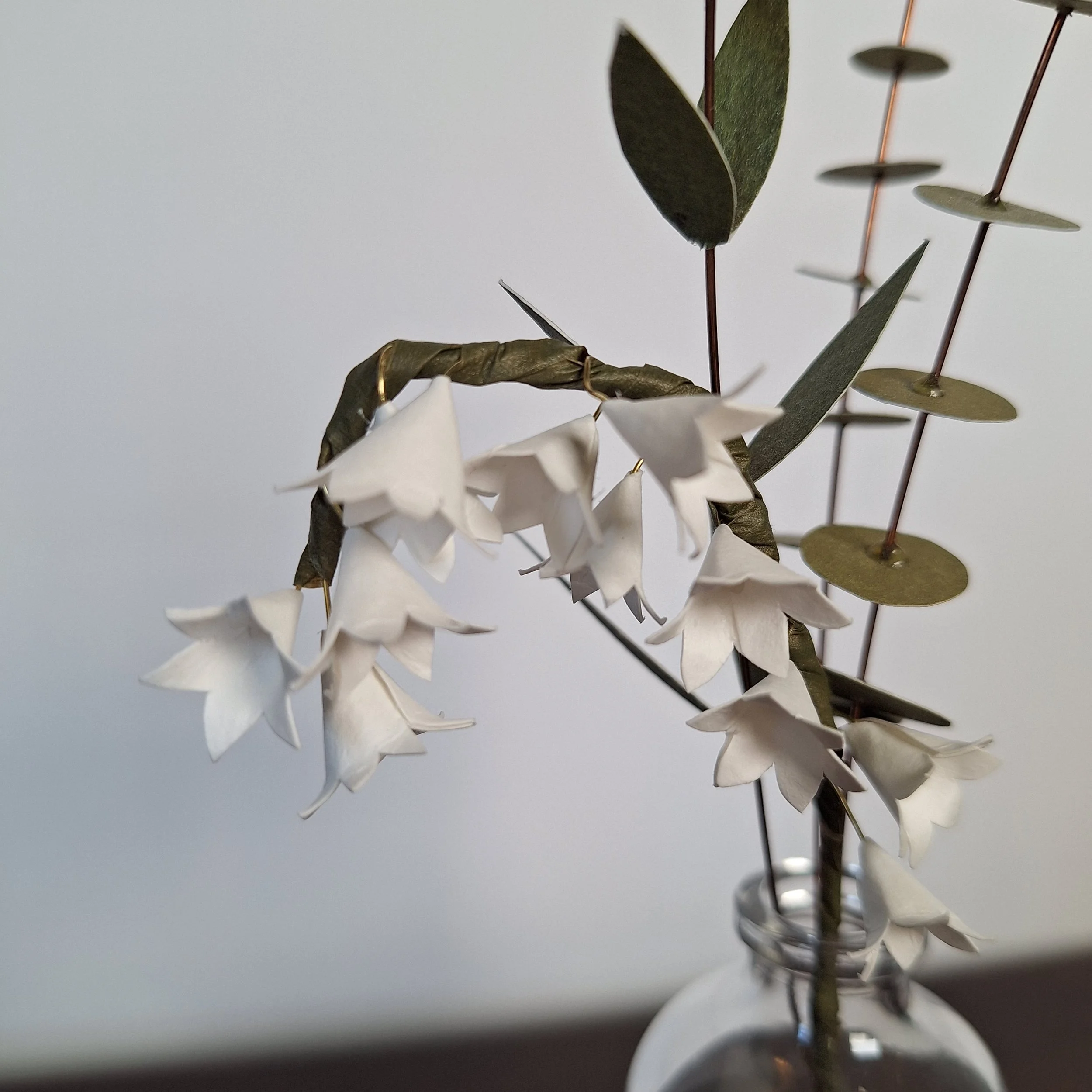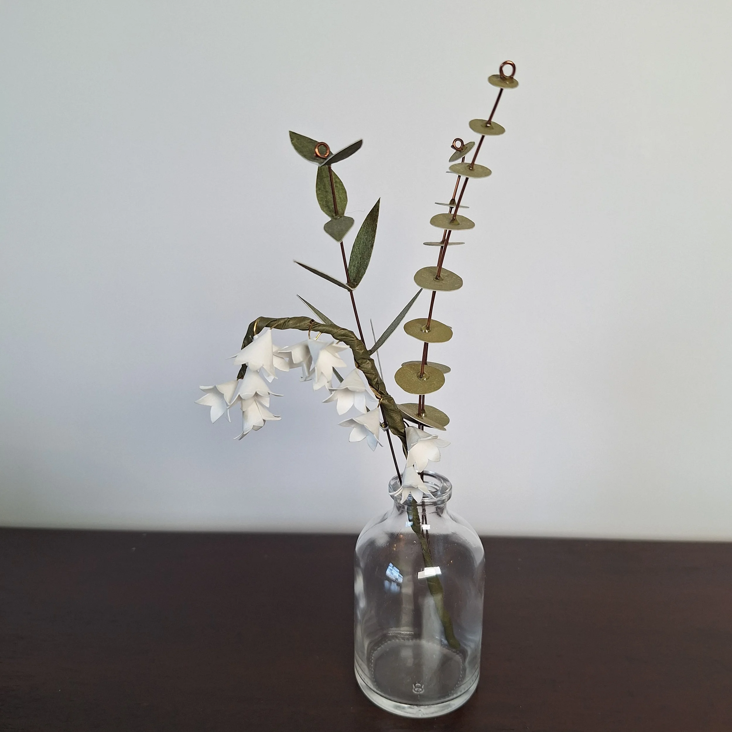 Two clover stems in a deep pink red are accompanied by three leafy stems.