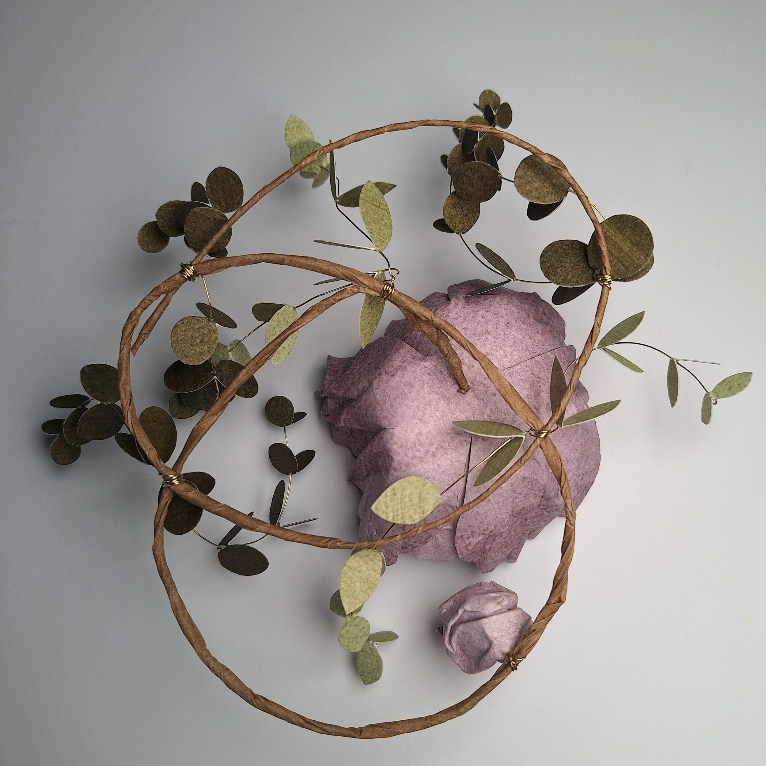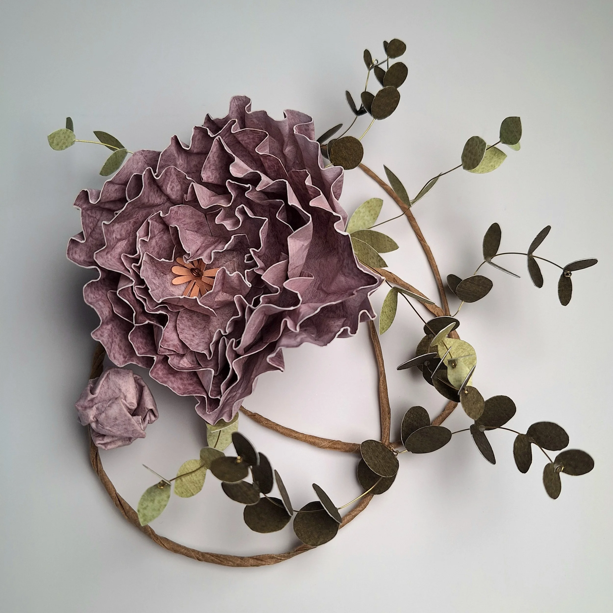 The mini wreaths have no hanging hook. They will hang on a nail tack or hook from their sturdy wire frame, so that you can hang it in whichever orientation you fancy.